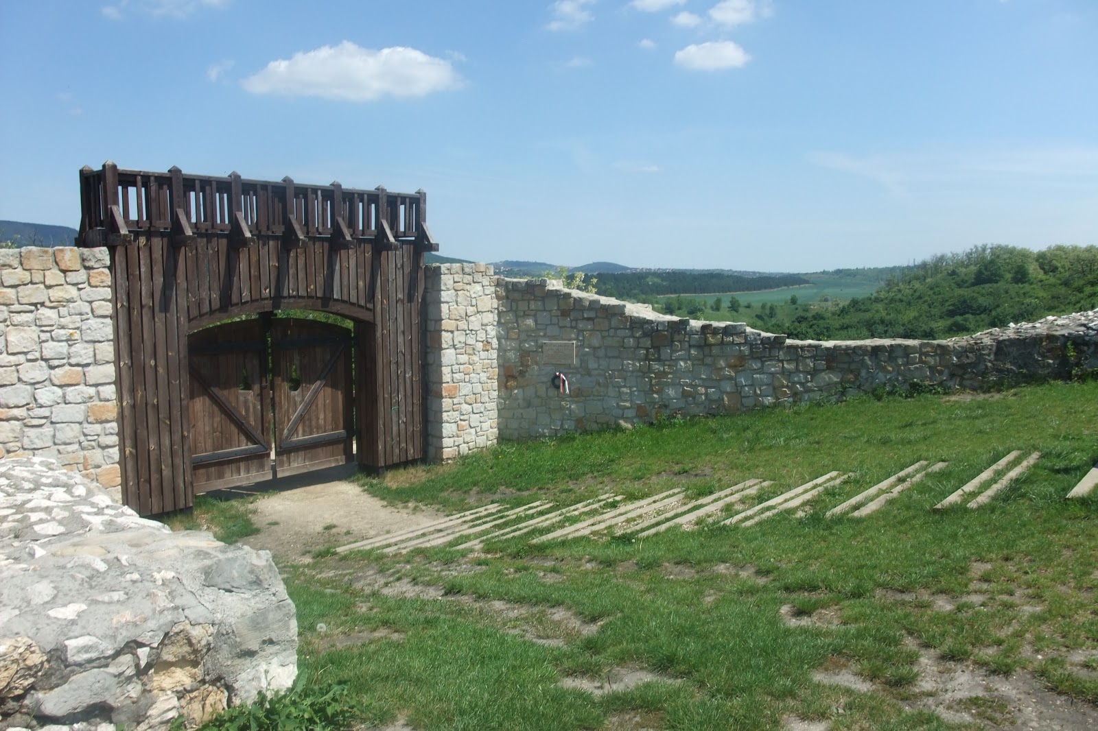 Visszafelé felsétáltunk a várromhoz. A vár kapuja be volt zárva, de ha a kilátót megkerüljük, akkor be lehet menni a várudvarra. A kilátóba is csak innen lehet felmenni, a tábla szerint csak saját felelősségre. Nagyon szép a kilátás, kicsi Túrakölyök itt megebédelt, aztán mentünk vissza az autóhoz.