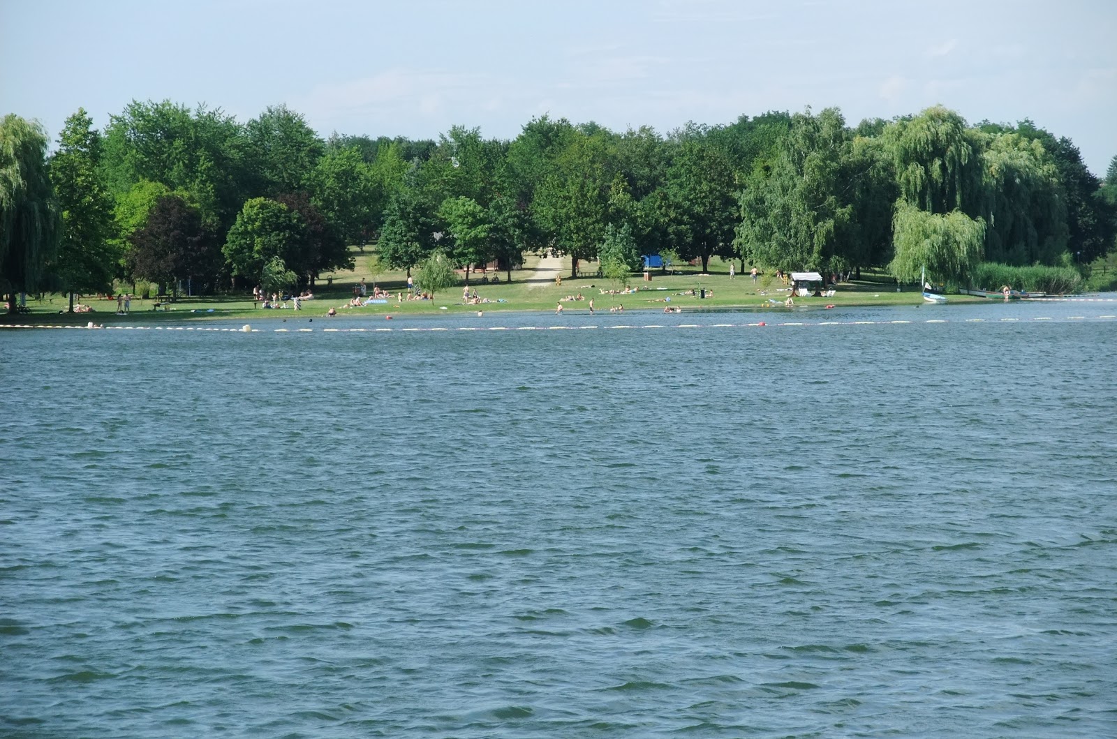 Zalaegerszeg tavacskája a Gébárti-tó. Nagyon kellemes hely, saját stranddal, és egy (szerintem marketing:-) gólyával a tó melletti kis úton. Ezt a gólyát semmi nem zavarja, legfőképp az emberek nem, a horgászok mellett lépeget, és hagyja magát kikerülni a bicikliseknek és babakocsisoknak:-)
